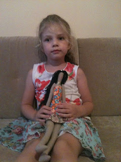 Сшила куклу в садик, чтоб детки там играли, сказала Алене чтоб оставила там, а она сама играет, но хоть другим дает. На подходе еще одна такая, только с белыми волосиками